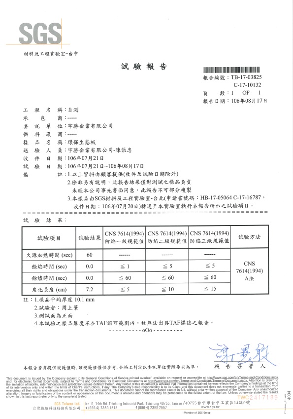 SGS防焰試驗報告