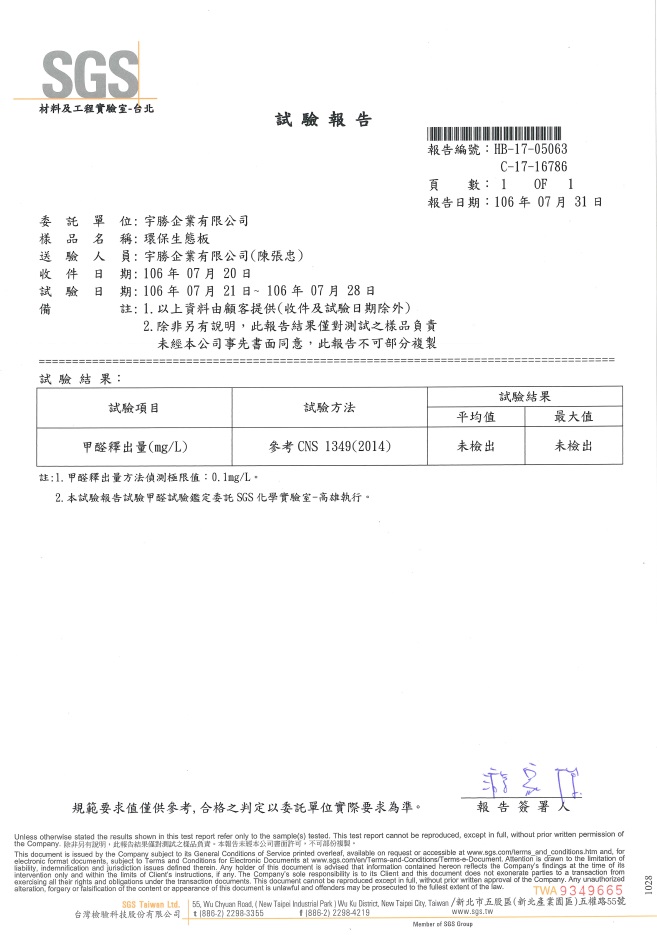 SGS甲醛試驗報告