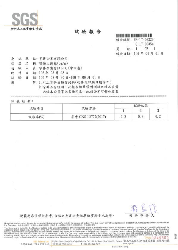 SGS吸水率試驗報告