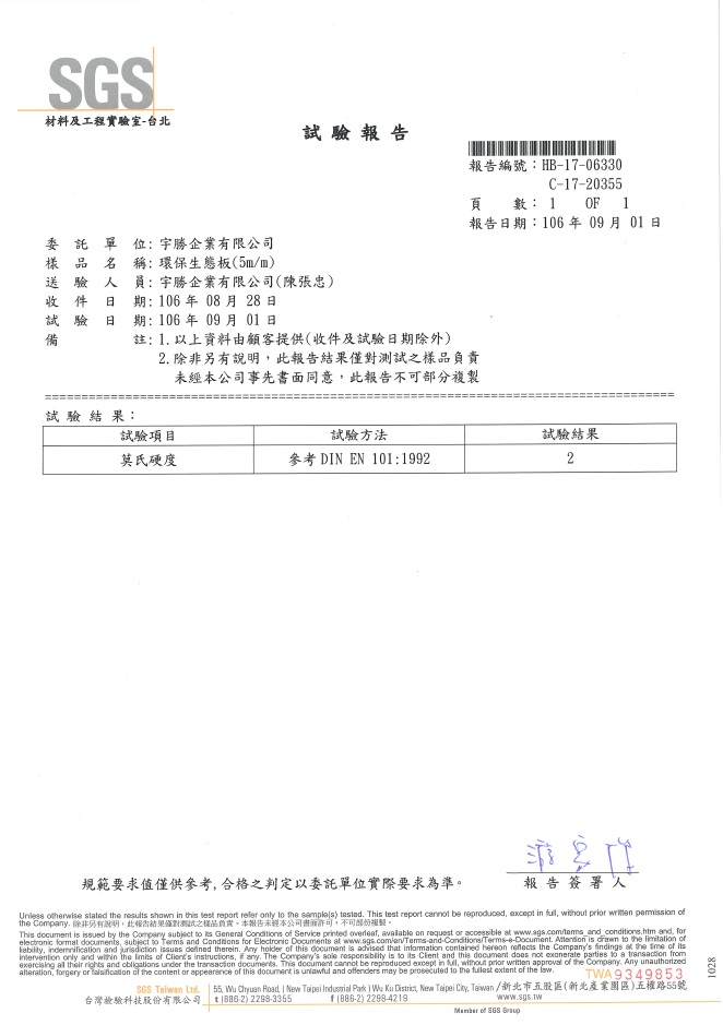 SGS莫氏硬度試驗報告