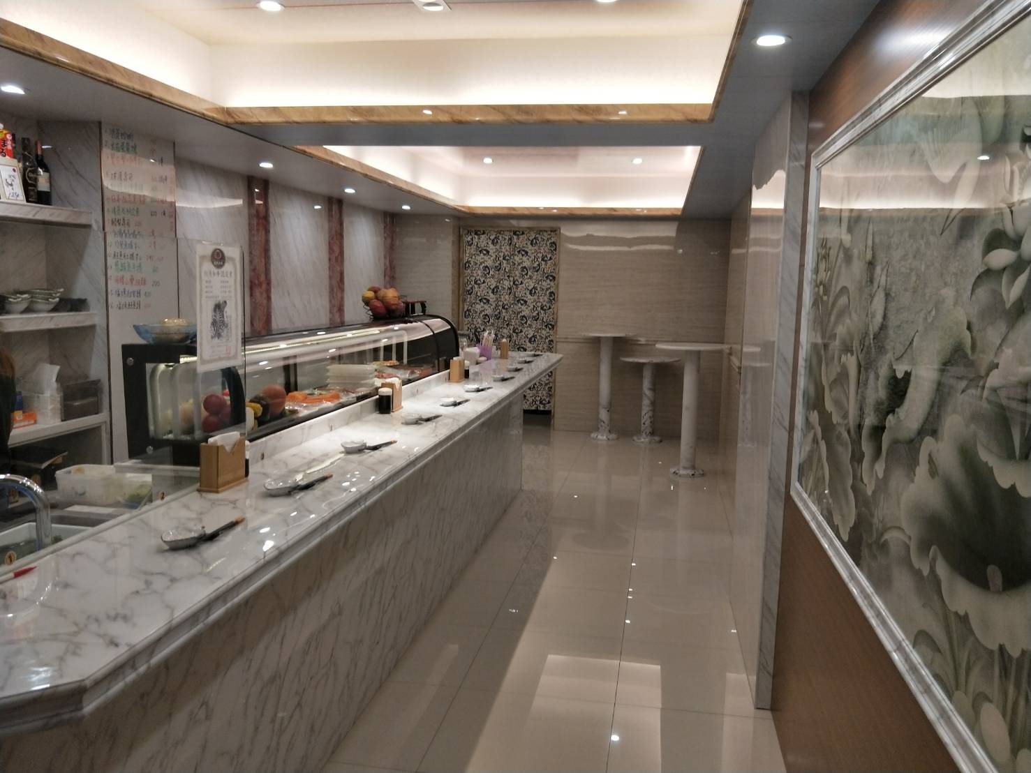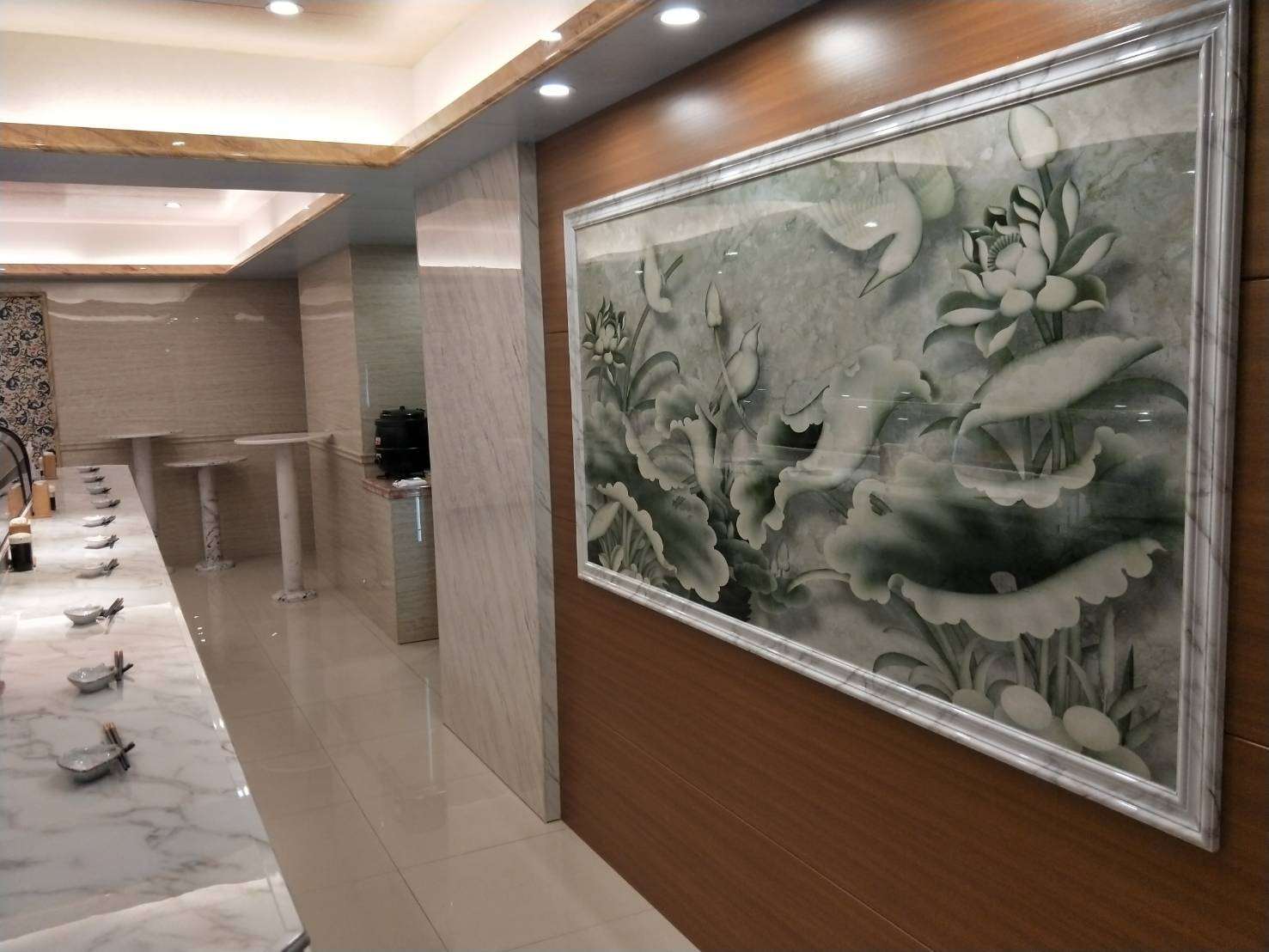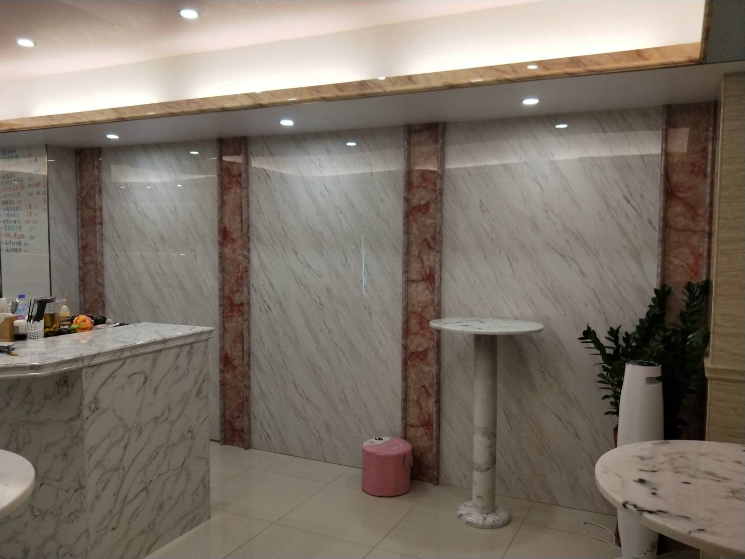 櫃檯-雕刻白,牆面-銀狐