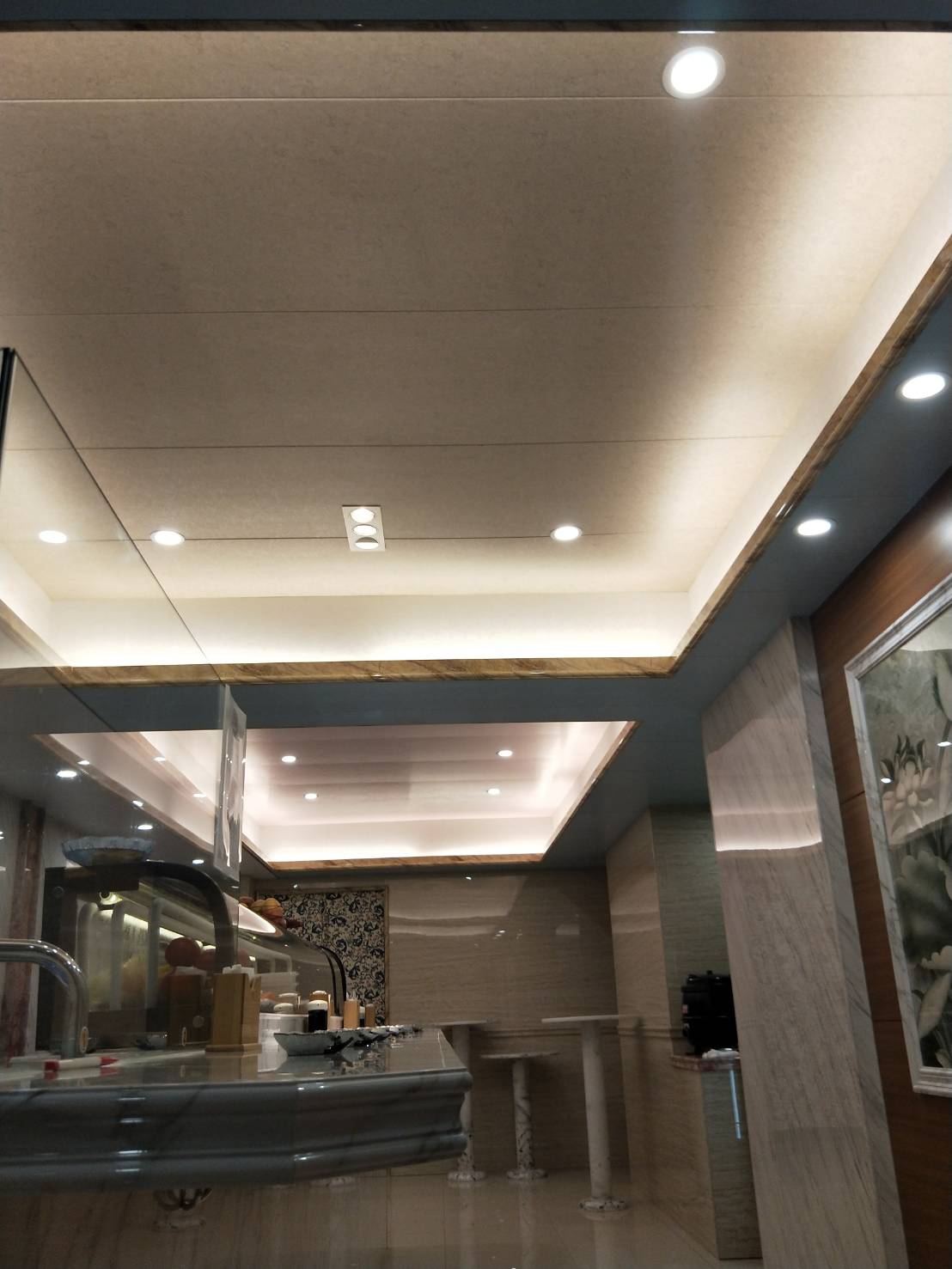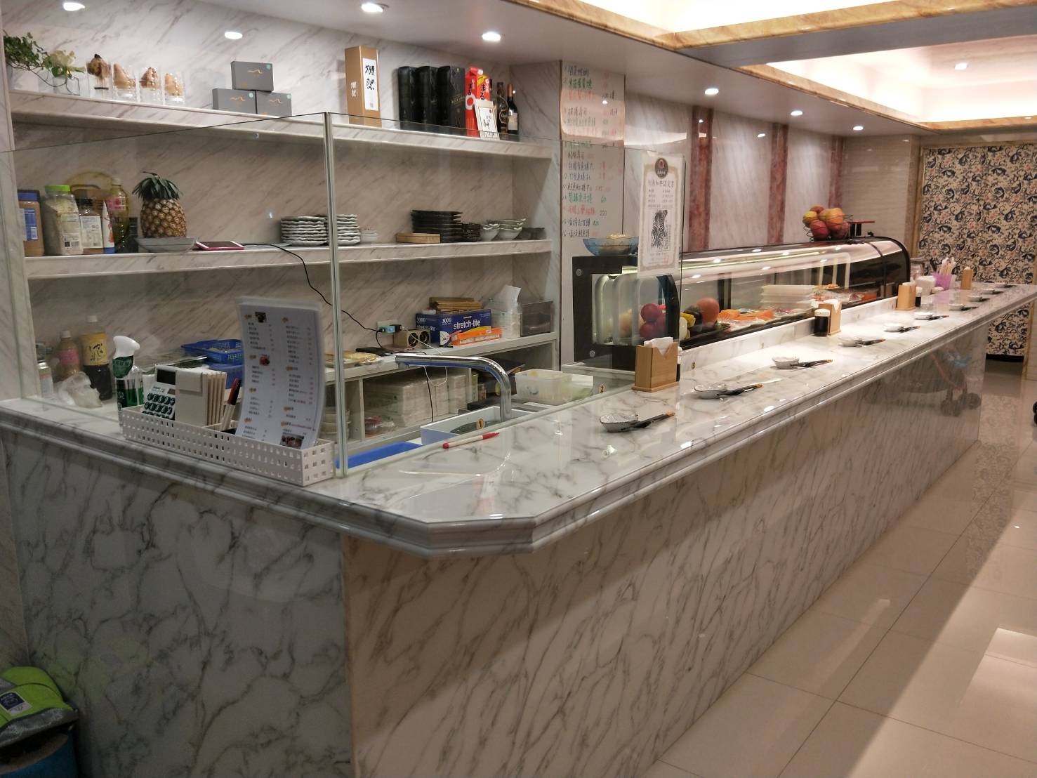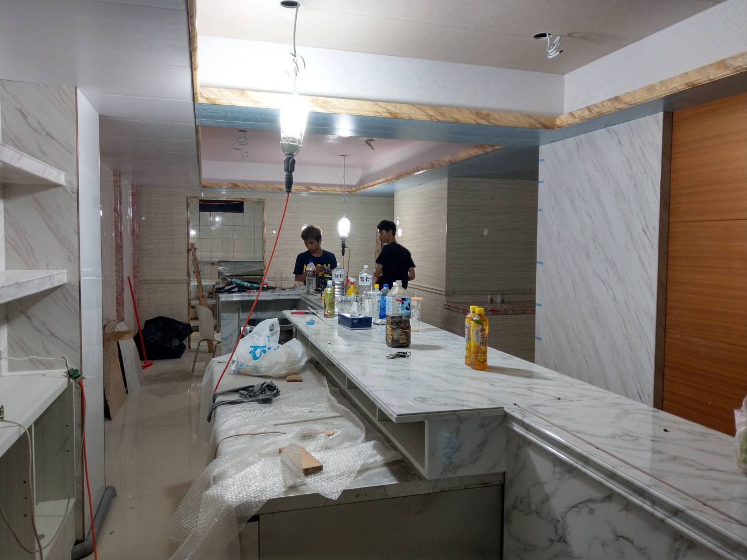 櫃檯-雕刻白,牆面-銀狐